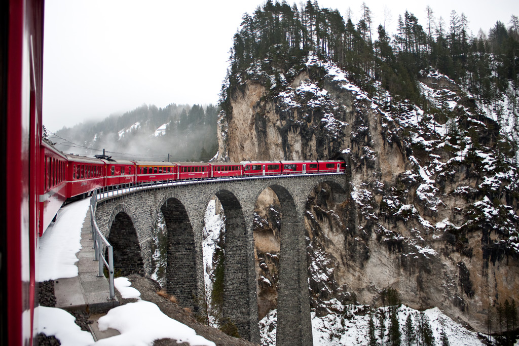 Eine Alternative zum Glacier Express, die aber nicht weniger landschaftlich reizvoll ist, bietet der Bernina Express. Auch er startet in der Schweiz, fährt aber in die italienische Stadt Tirano. Diese Strecke ist kürzer, aber noch spektakulärer: Der Zug erklimmt eine Höhe von über 2.000 Metern über dem Meeresspiegel, überquert den Morteratschgletscher und fährt hinab in die Palmenhaine des Veltlins. Die Landschaft verändert sich hier so rasant, dass man kaum Zeit zum Blinzeln hat. Von der Eiswüste zur mediterranen Vegetation – in nur wenigen Stunden. Der Bernina Express gehört zum UNESCO-Welterbe und gilt als eine der schönsten Bahnstrecken der Welt. Direktzüge fahren von München nach St. Moritz, dem Ausgangspunkt der Strecke.