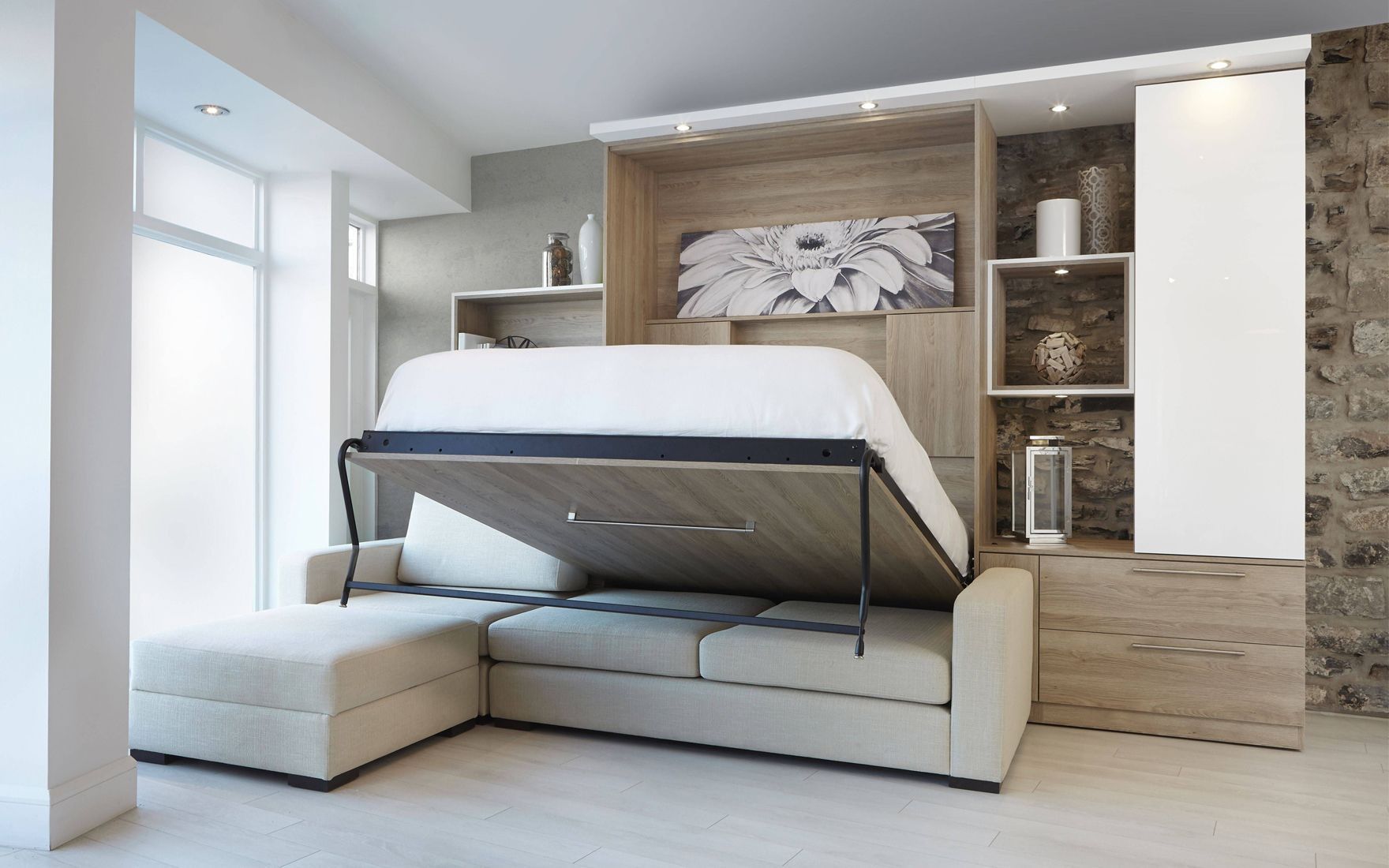 Der zweite Lifehack, der bei deutschen Innenarchitekten beliebt ist, sind wandelbare Möbel. Ein Klappbett, ein ausklappbarer Esstisch und ein Couchtisch mit Schubladen sind nur einige Beispiele. Sie müssen keine teuren Systeme kaufen – Sie können gewöhnliche Möbel umfunktionieren. Flache Aufbewahrungsboxen aus Kunststoff für Schuhe oder Bettwäsche passen beispielsweise perfekt unter ein Bett mit hohem Lattenrost (mindestens 30 cm). In Deutschland sind sie bei Tchibo oder Woolworths erhältlich. Eine weitere Möglichkeit: Hängeregale über der Tür – dort ist oft ungenutzter Platz, der sich für Kisten mit selten benötigten Gegenständen eignet.